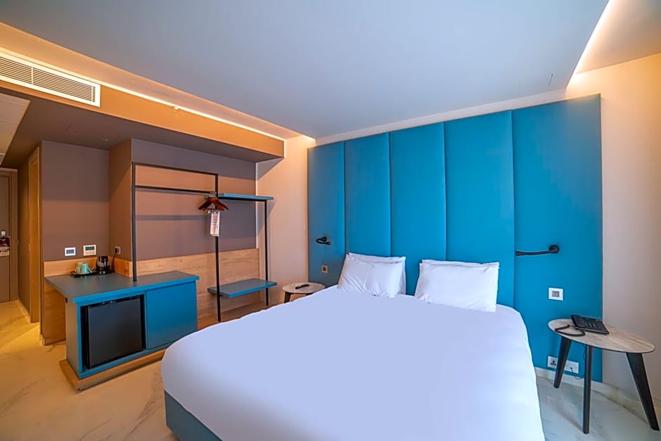 Privilege Deluxe double room with queensize bed, balcony and sea views is 269 square feet and includes a double bed 131-150 width.